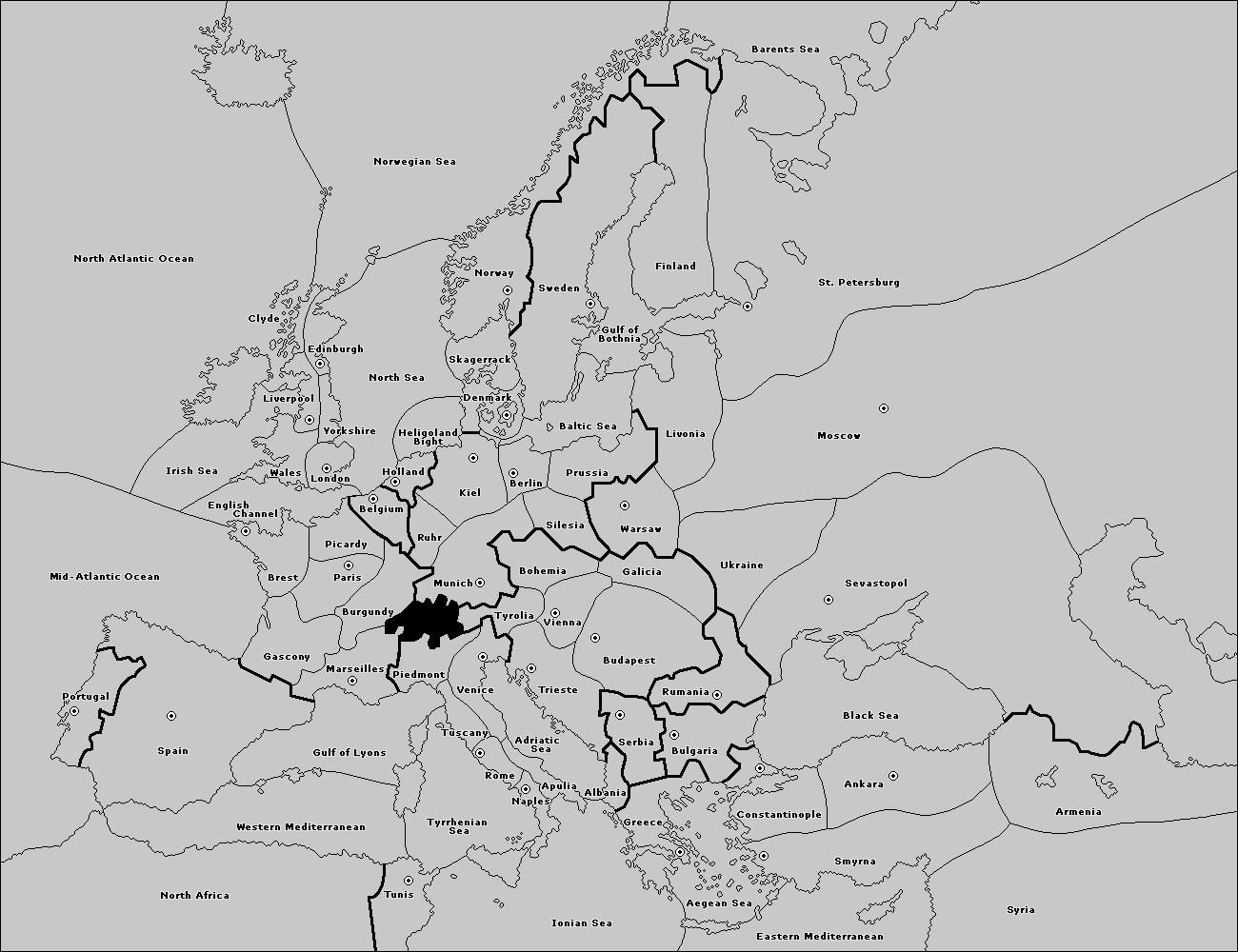 2. Territories with a support-center: See their current territory + every territory that share a border with them